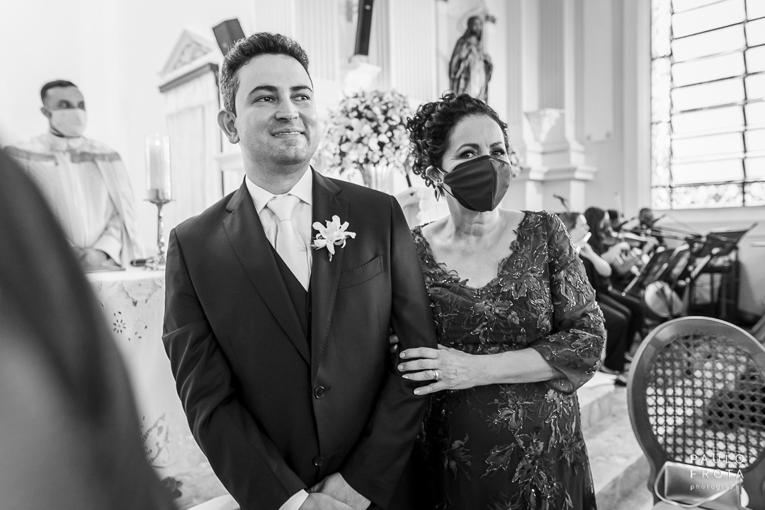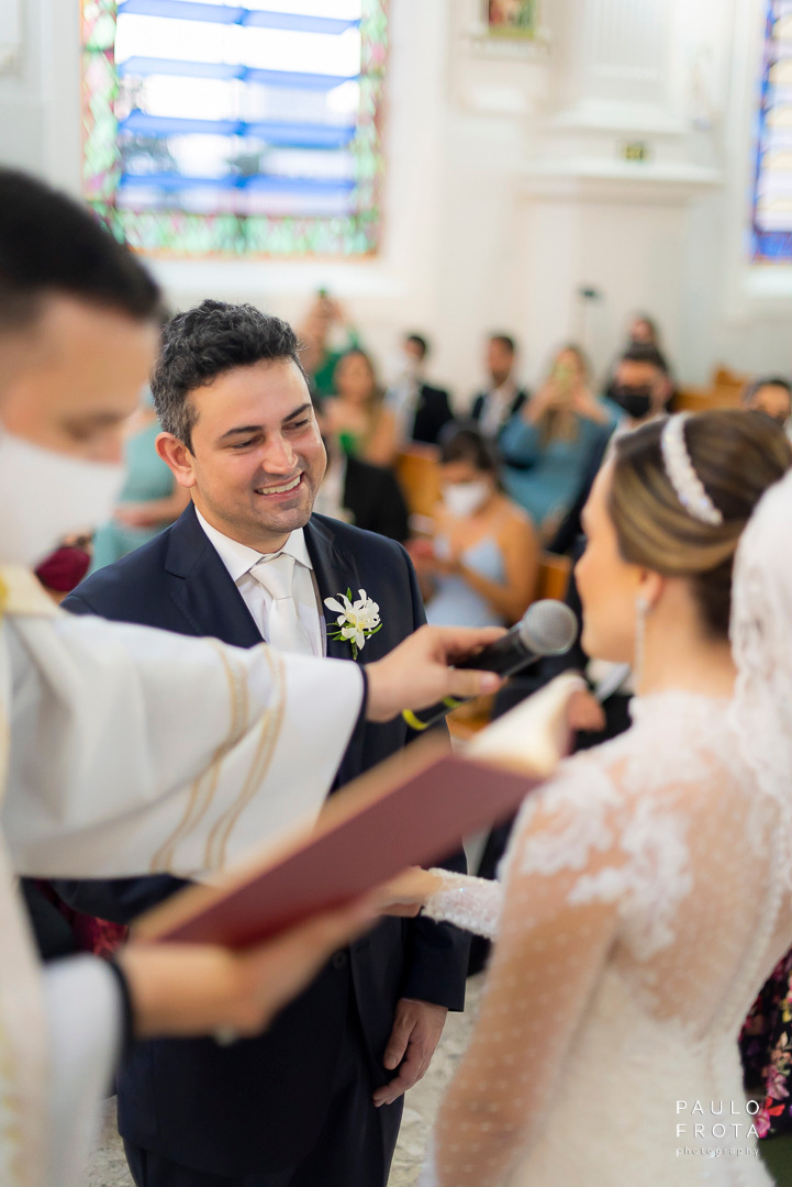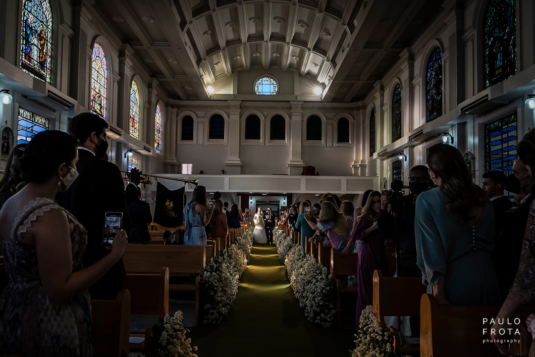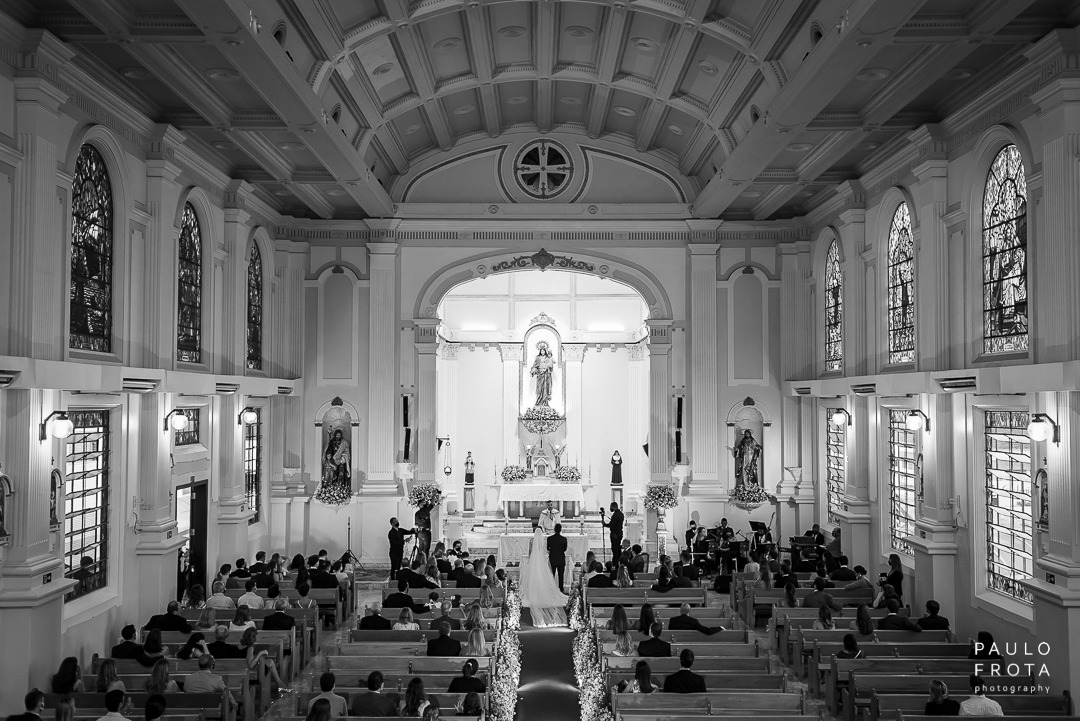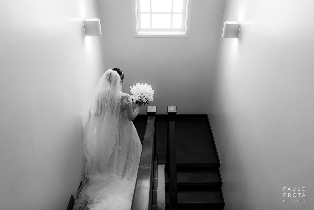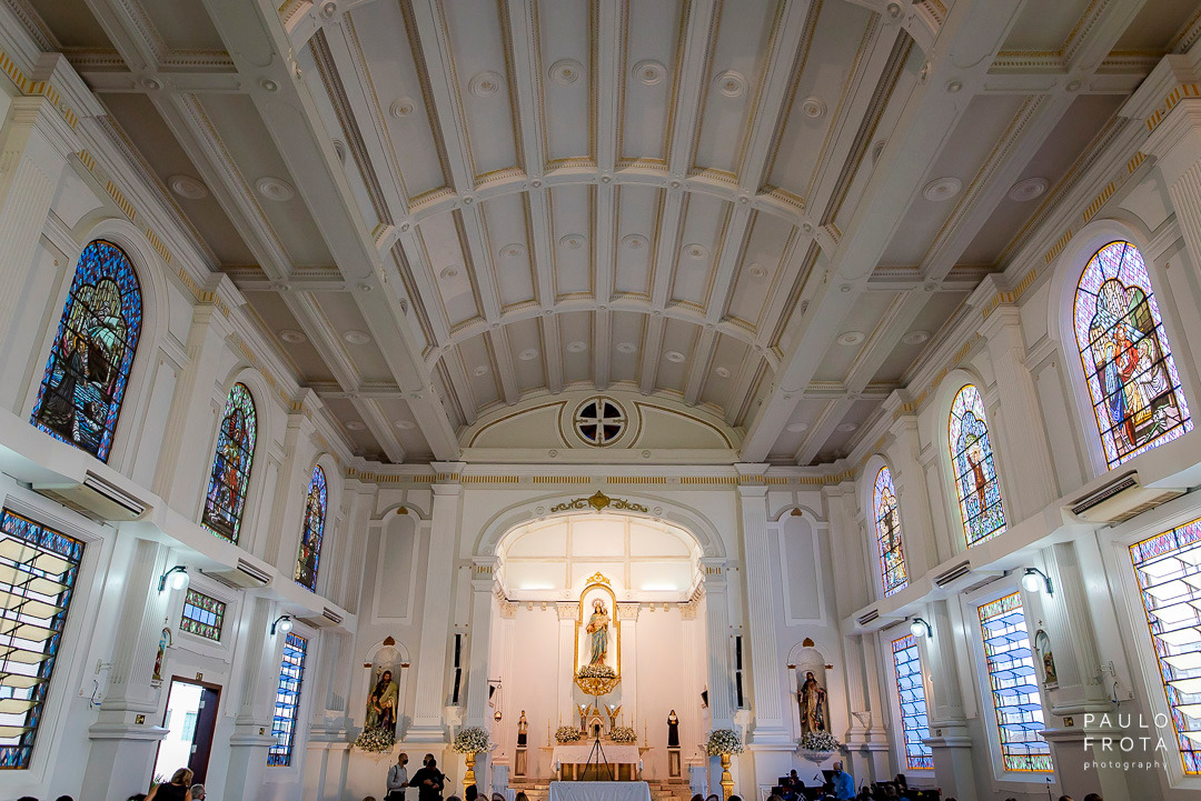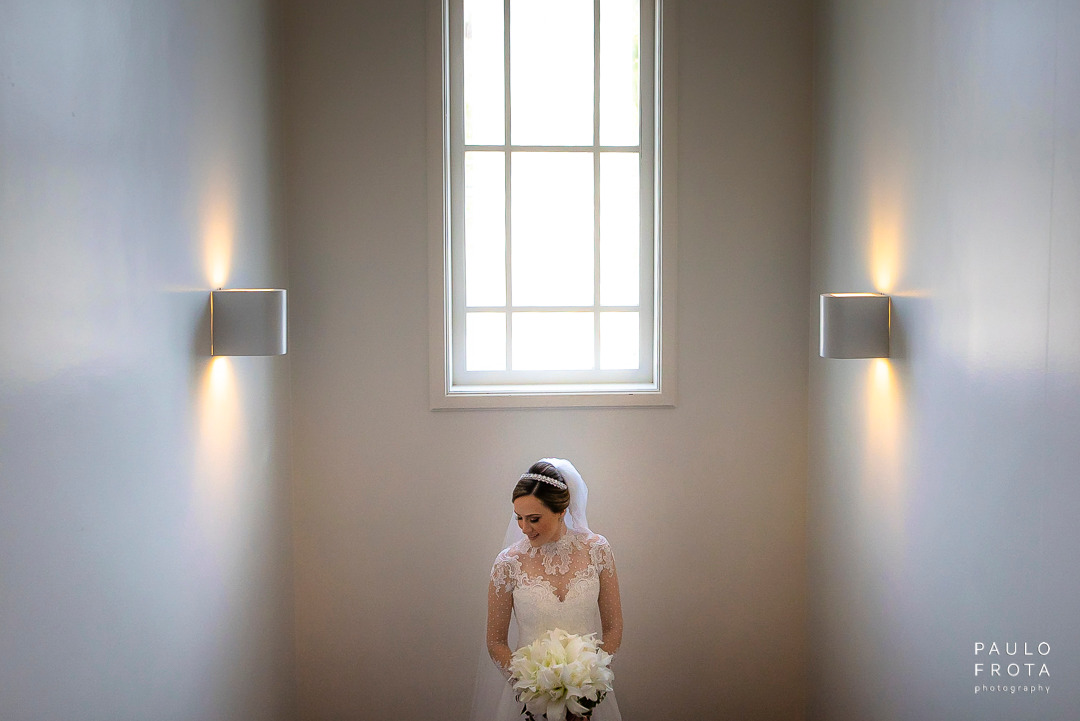 A cerimonia realizada durante dia, com as luzes passando pelos vitrais nos dava algumas imagens bem fortes de luz e sombra. Eu gosto e utilizei o máximo das sobras em algumas fotos justamente para termos a idéia de tempo mesmo estando dentro de um ambiente fechado.