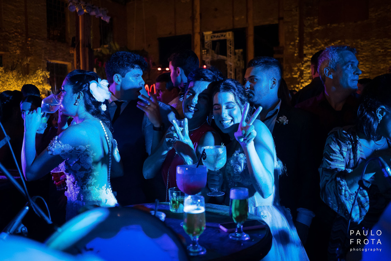 E as bebidas? Ah, meu irmão, não paravam de rolar... regado demais! Tava todo mundo com aquele sorriso no rosto, curtindo o momento e celebrando o amor dos noivos.